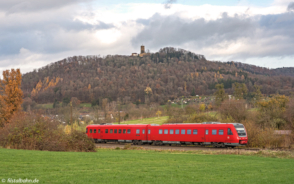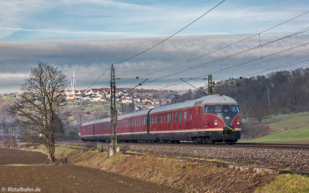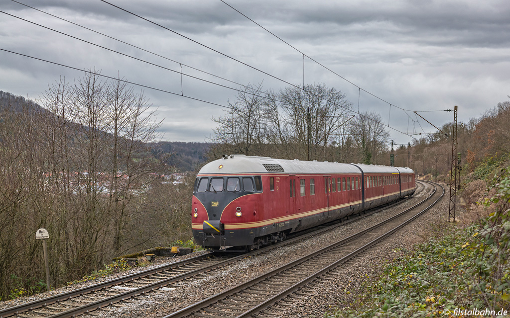 Bereits frühzeitig konnte das Dröhnen der Dieselmotoren des vierteilige Triebzuges auf der Geislinger Steige vernommen werden.