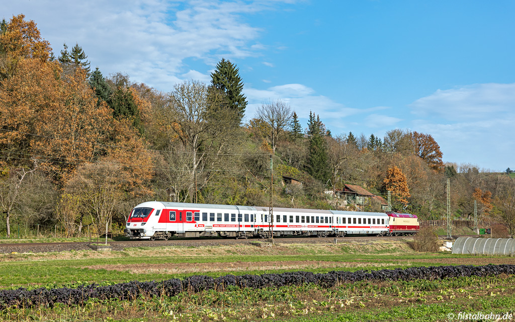 Mit Schnellfahrlok 103 245 aus dem DB Museum Koblenz und einem Bundeabahn IC der 80er Jahre ging die Reise von Koblenz nach Friedrichshafen und Lindau. Wetter und Zug erstklassig!