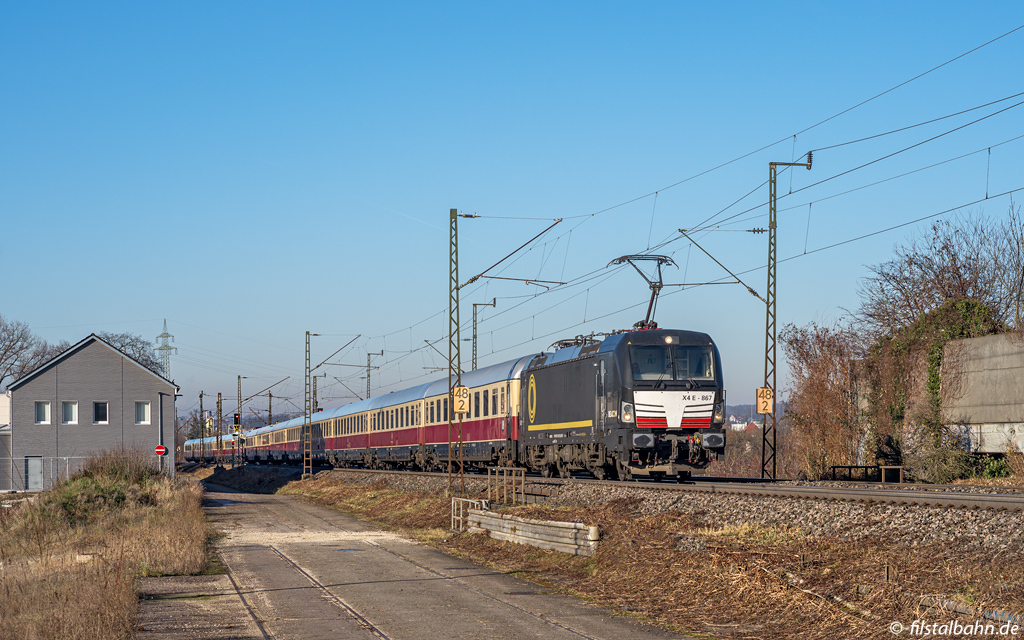 Die Abschiedsfahrt d. letzten Lokomotion 151 (Fristablauf 10.1.24) führte v. Rheine nach München. Der DGS 59963 wurde mit ca. 5 Std. Verspätung u. somit bei Tageslicht in Gingen gesichtet.