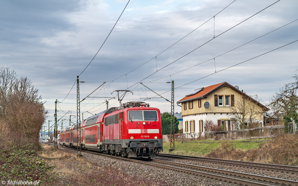 111 169 war ein weiteres Mal für einen Tag zur Aushilfe am RE 5 im Einsatz. Dabei zeigte die Lok ihre beste Seite, den farblich aufbereiteten Führerstand 1.