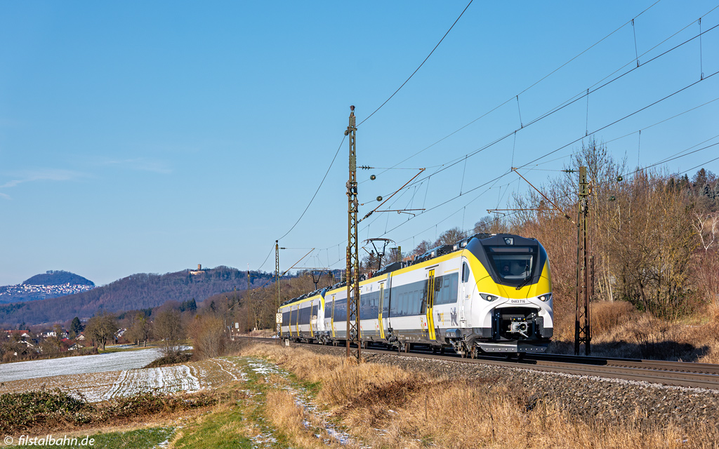 Während auf der Autobahn zum Ferienende reger Rückreiseverkehr herrschte, hatte der RE 200 nach Ulm "freihe Bahn". Das Sandwich-Gespann aus 193 603 und 193 636 brauchte von Wendlingen bis auf Höhe Holzmaden gerade mal fünf Minuten.
