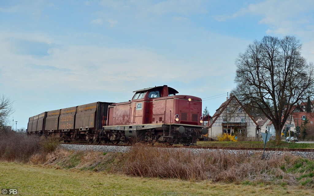 Als Ersatz durfte 212 024 der Heinrichsmeyer Eisenbahndienstleistungen UG in Trier-Ehrang die Donnerbüchsen über die Alb ziehen.