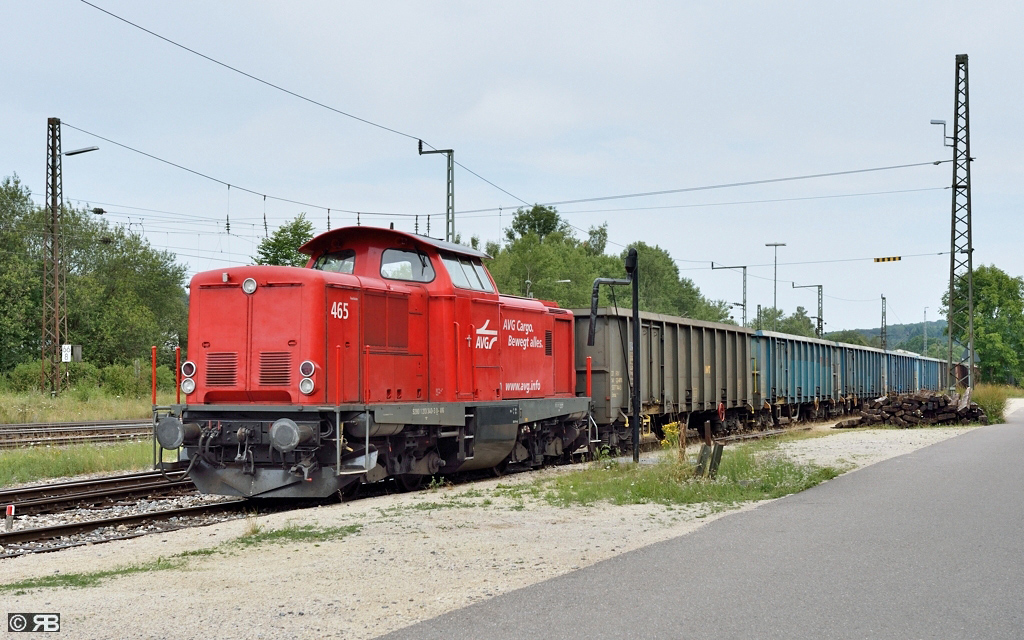 Den Sandzugverkehr zwischen Amstetten und dem ehemaligen Betriebsstofflager der BW bewerkstelligt derzeit Lok 465 der Albtal-Verkehrs-Gesellschaft Karlsruhe (AVG). 213 340 ist eine