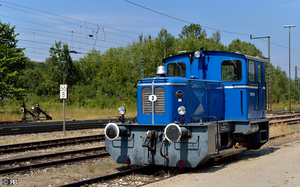 Lok 3 (B-dm / Deutz) wartet in Amstetten auf ihren nächsten Einsatz. Die ehemalige Werklok (Bj. 1956) der Fa. Voith in Heidenheim zeigt sich in einem sehr guten Zustand und wird auf der