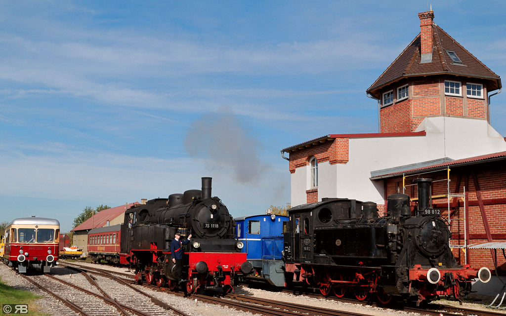 261 687 war im wahrsten Sinne des Wortes mal wieder am Zug. Aber die ganze Aufmerksamkeit galt heute der rauchenden Maschine am Zugende. 75 1118 hatte ihren ersten Auftritt
