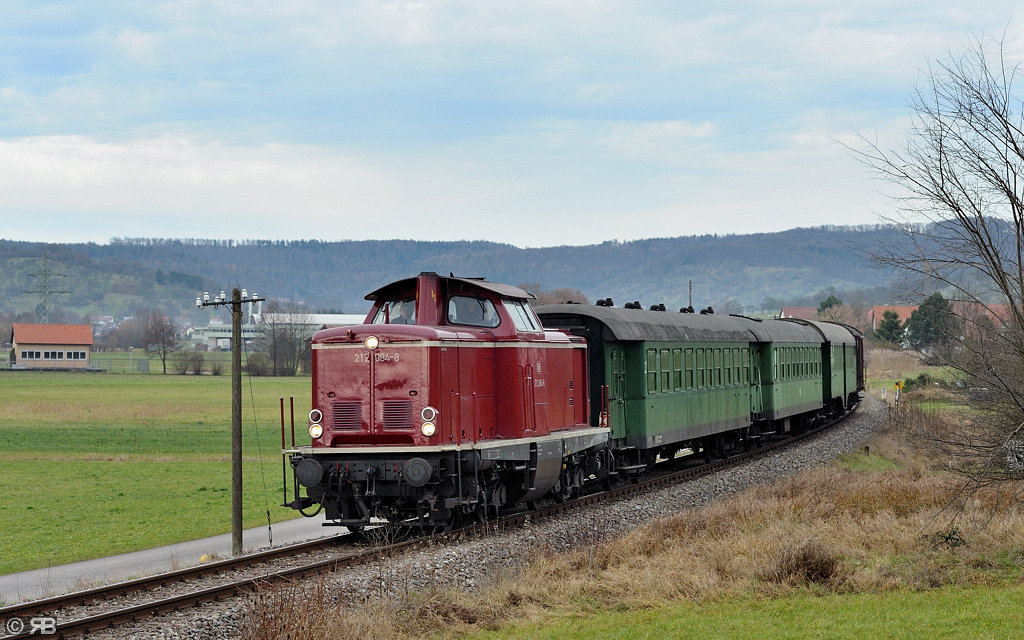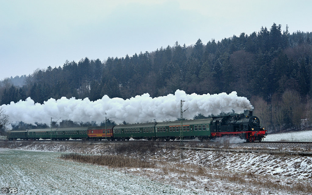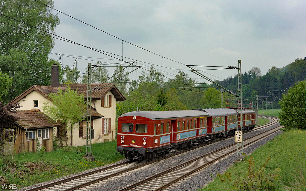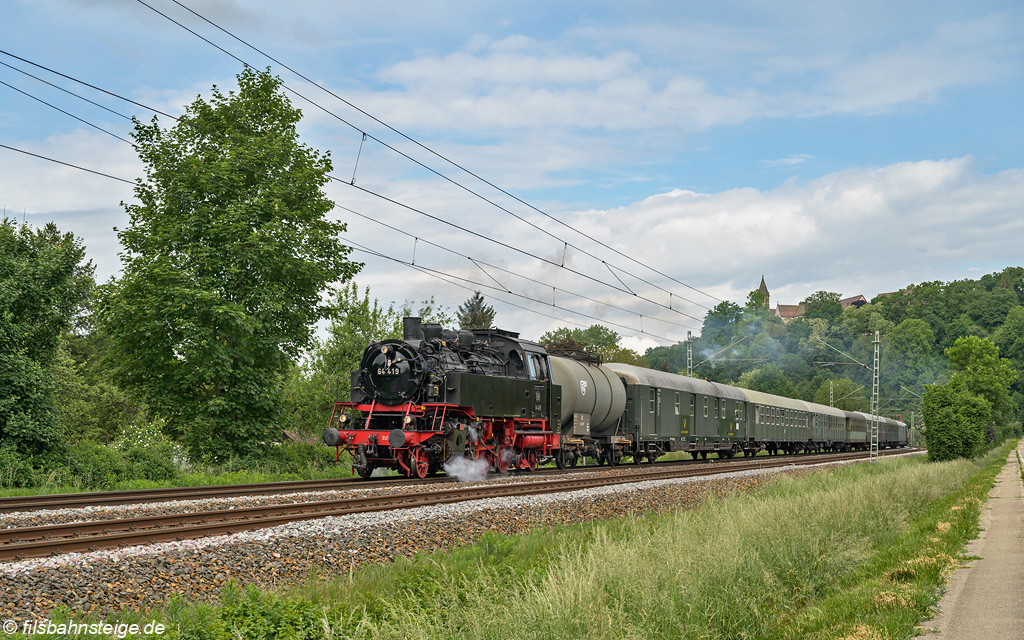 von Schwäbisch Gmünd auf der Fahrt nach Stuttgart zu sehen. Nur vier Tage später musste die Lok wegen eines Bremsschadens ihren Dienst quittieren und wurde von Schorndorf nach Stuttgart abgeschleppt.