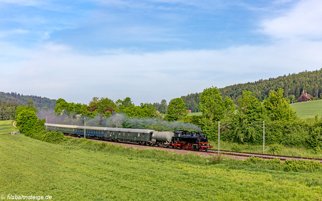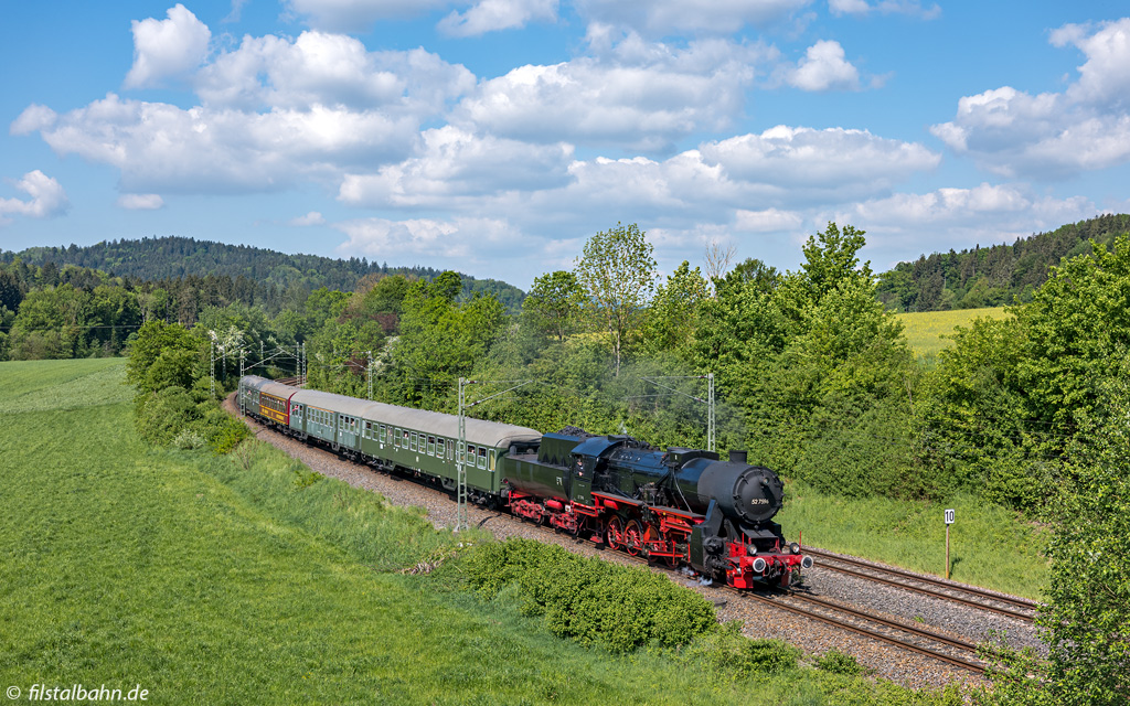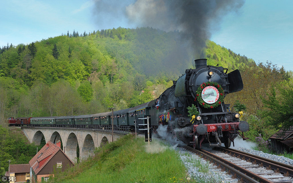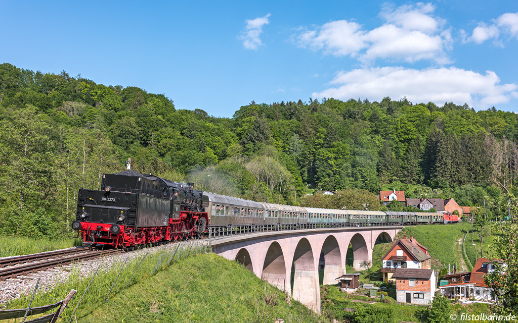 Üblicherweise ist der "Feuriger Elias" in Form von 50 2273 auf der Strohgäubahn anzutreffen. Als Gastlok versah sie an Christi Himmelfahrt auf der Schwäbischen Waldbahn ihren Dienst.