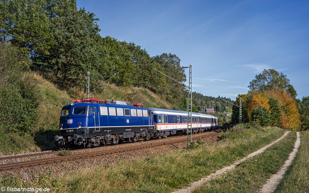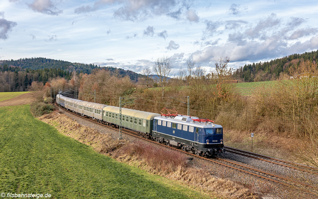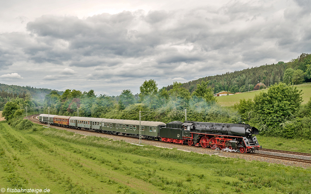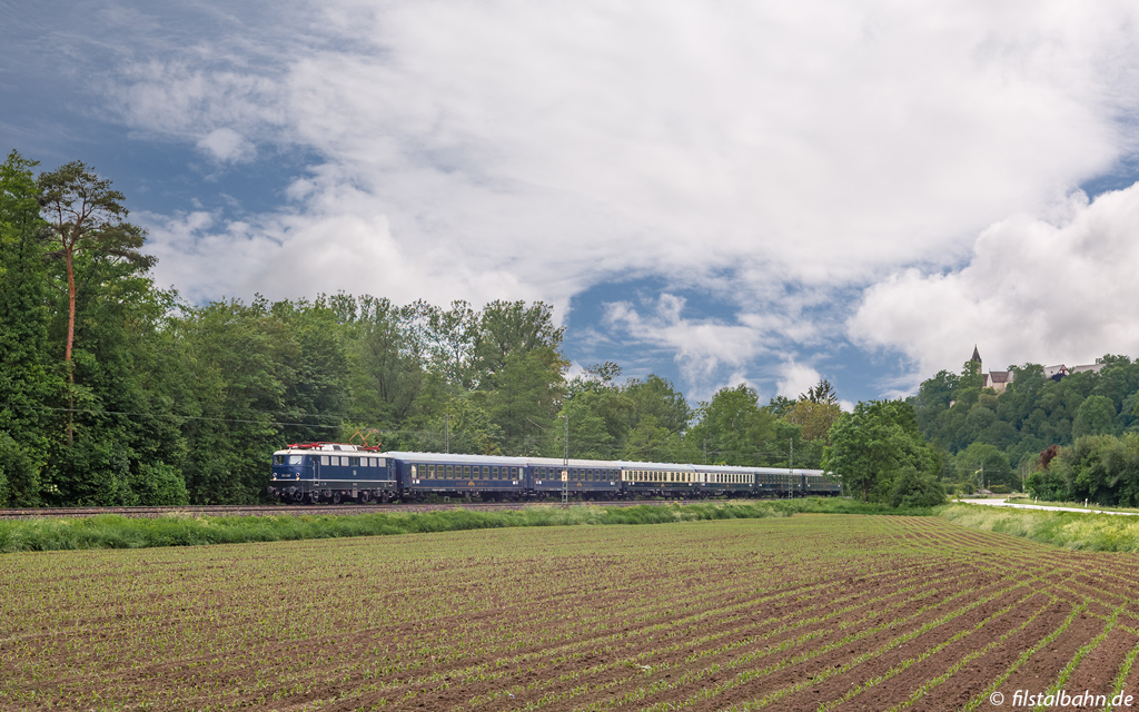 Für die erste Etappe von Stuttgart nach Nürnberg war E10 228 am Zug. Bis Dresden sollten noch 01 1104, 50 3616, E77 10 und 03 2155 für die