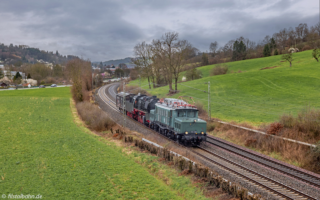 Durch Verfolgung des Zuges wurde ein weiteres Foto der "Heimkehrerin" bei Mögglingen ermöglicht. Die offizielle Übergabe der historischen 50er wird beim