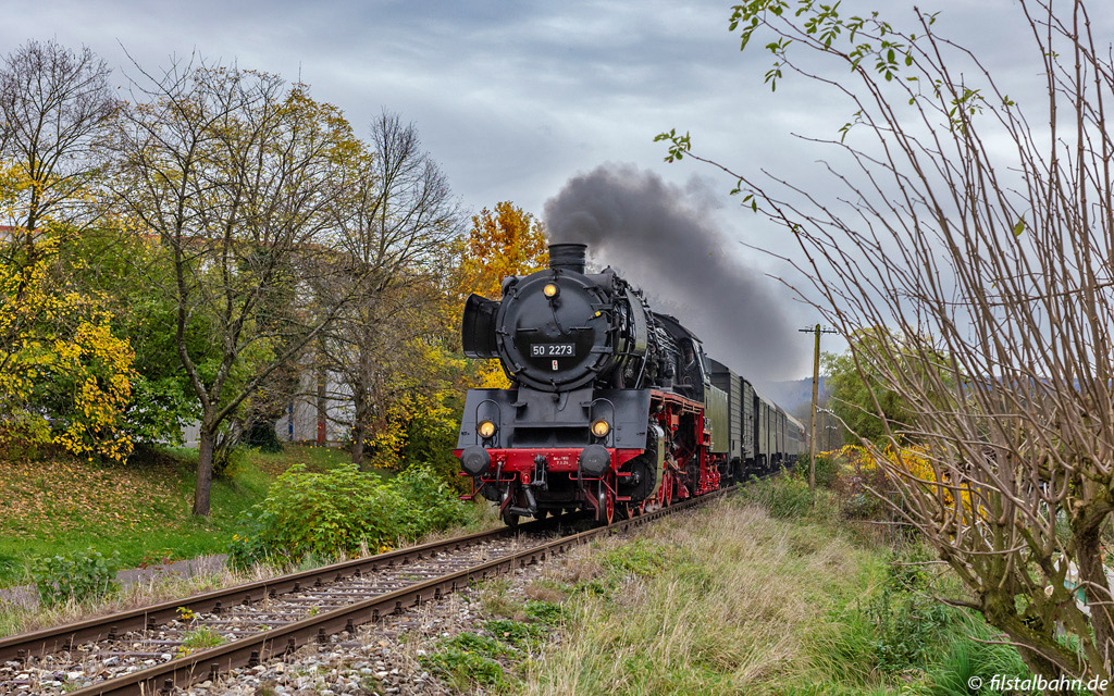 und muss aufwendig und kostenintensiv in Stand gesetzt werden. Für die Sonderfahrten kam Lok 50 2273 mit historischem Wagenmaterial zum Einsatz. Die im Privatbesitz befindliche Lok ist eine Leihgabe an die GES